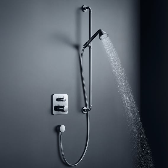 Deze AXOR Front glijstangset met garnituur 1 straalsoort 915 mm chroom 26023000 biedt een uitstekende douche-ervaring met zijn zorgvuldig ontworpen functies. De handdouche, ontworpen door Front, beschikt over een Rain straalsoort die zorgt voor een gelijkmatige en zachte waterstraal. De interne, aparte watergeleiding beschermt de chromen afwerking, terwijl kalkafzettingen eenvoudig kunnen worden verwijderd door de QuickClean technologie. Met EcoSmart technologie bespaart u water zonder in te boeten op doucheplezier. De set bevat een uitspoelbaar vuilfilter en de handdouche heeft een diameter van 85 mm. De douchestang wordt geleverd met een Isiflex doucheslang die knikbestendig, flexibel, eenvoudig te reinigen en voorzien is van een verdraaiingsbescherming. De doucheslang heeft een lengte van 1600 mm en de douchestang heeft een hoogte van 915 mm, met een boorafstand van 915 mm.