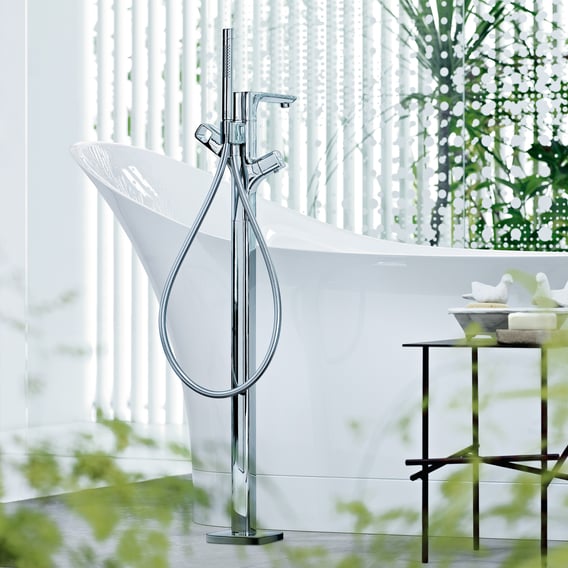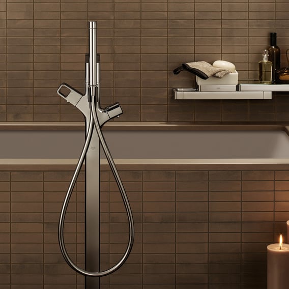 Deze AXOR Urquiola vrijstaande badkraan met thermostaat chroom 11422000 biedt een combinatie van uiterlijk en gebruiksgemak voor uw badkamer. De handdouche is uitgerust met een doucheslang van 1250 mm en biedt twee straalopties: de Rain straal voor een gelijkmatige, zachte waterstroom en de Mono straal voor een heldere, gelijkmatige waterstroom. U kunt eenvoudig tussen de straalopties wisselen door aan de douchekop te draaien. Dankzij de QuickClean technologie kunnen kalkafzettingen gemakkelijk van de siliconen sproeiers worden verwijderd door er licht overheen te wrijven. De badkraan is voorzien van een uitspoelbaar vuilfilter en een geïntegreerde douchehouder. De normale straal is zacht en met lucht verrijkt voor een aangename ervaring. De thermostaatcartridge maakt het mogelijk om de temperatuur nauwkeurig te regelen door te draaien, en zorgt voor een constante watertemperatuur, zelfs bij wisselende waterdruk. Een veiligheidsslot bij 38 °C beschermt tegen per ongeluk te hoge temperaturen. De overgang van baduitloop naar handdouche gebeurt eenvoudig met een omsteller en Hij heeft een automatische terugstelling. De geïntegreerde terugstroombeveiliging biedt extra veiligheid.