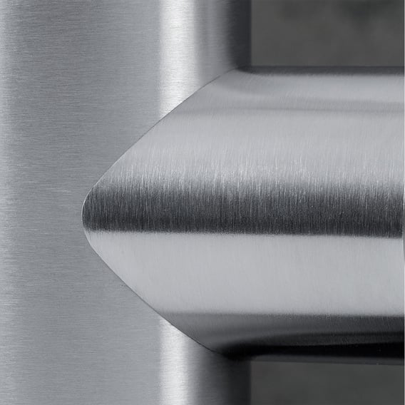 Deze Blanco Lanora-S RVS geborsteld keukenmengkraan met haakse uitloop en draaibare sproeislang 523123 biedt een geavanceerde waterervaring dankzij de parelstraal, een zachte, met lucht verrijkte straal. Hij is uitgerust met een soepel werkende keramische cartouche en een draaibare uitloop met een draaibereik van 190 graden. De uitloop is voorzien van een luchtinlaat voor een goed gevormde waterstraal, wat het gebruik van water in hoge vaten vergemakkelijkt. De uitloop is uittrekbaar met een metalen sproeislang van 1500 mm en een uittreklengte van 600 mm. De bedieningshendel heeft een verticale basispositie om te voorkomen dat deze tegen de achterwand slaat, en de koudwaterinstelling is verticaal voor een verminderd warmwaterverbruik. Hij wordt geleverd met een stabilisatieplaat voor verbeterde stabiliteit bij montage met roestvrijstalen spoelbakken en is voorzien van flexibele aansluitslangen. Het ontwerp is eigendrukveilig tegen terugstroming.