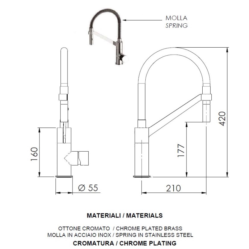 - Model: Daniel Fusion gourmet keukenmengkraan met knophendel kolom en veer chroom afwerking