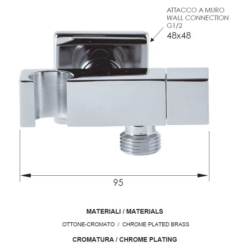 Daniel Serie handdouchehouder met aansluiting vierkant messing met stopkraan chroom afwerking