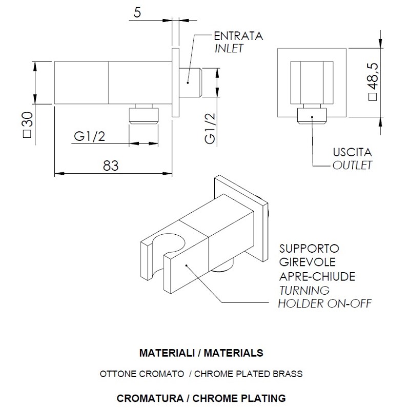 Daniel Serie handdouchehouder met aansluiting vierkant messing chroom