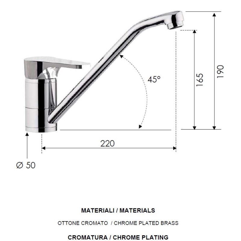 - Uitloop: Diagonale, draaibare uitloop met een lengte van 22 cm