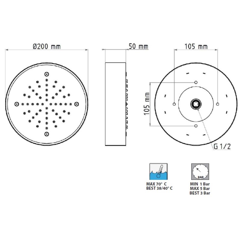 Daniel regendouchekop Ø37cm chroom met regenjets