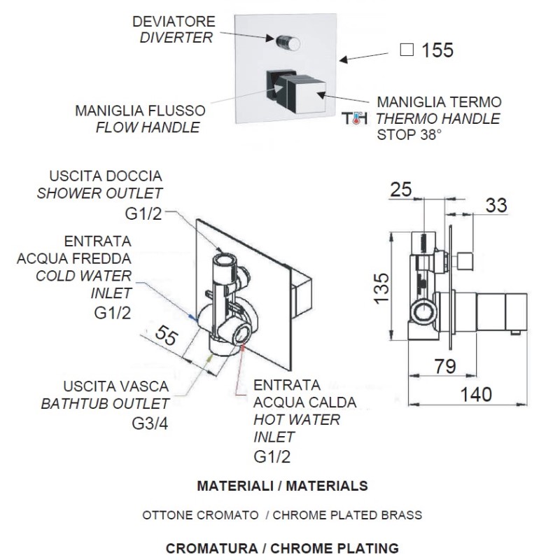 - Keramische cartridge van Ø25 mm voor soepele werking, met uitzondering van ingebouwde items die Ø35 mm gebruiken