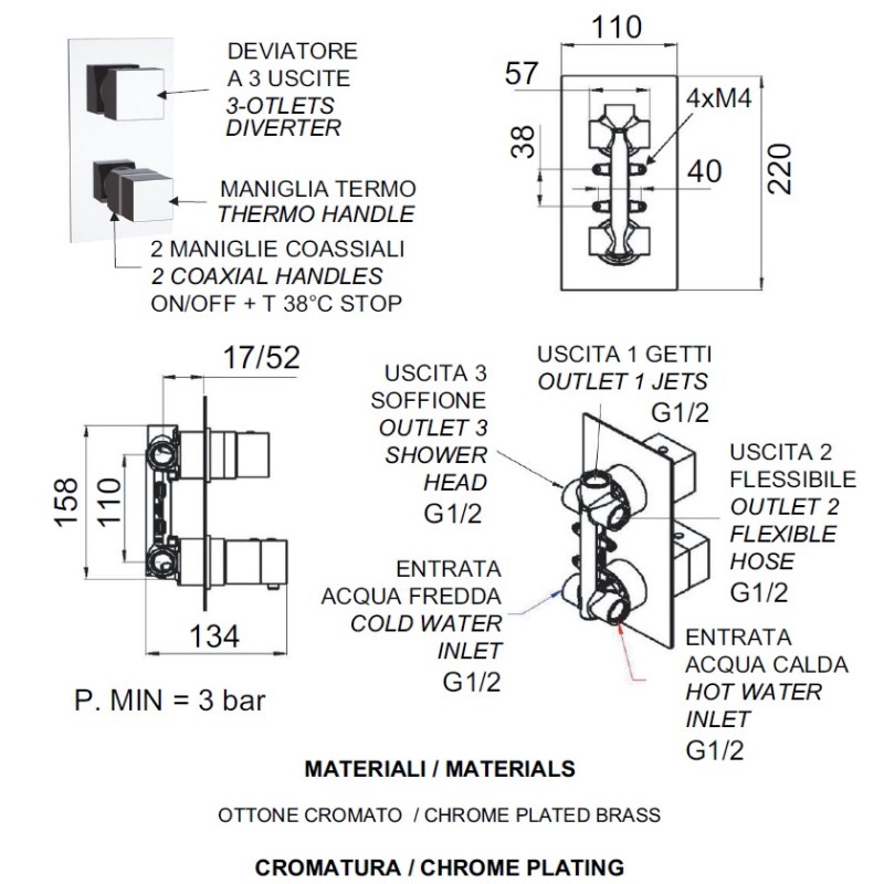 - Voorzien van een 3-weg mechanische omsteller voor 3×1/2 inch leidingen