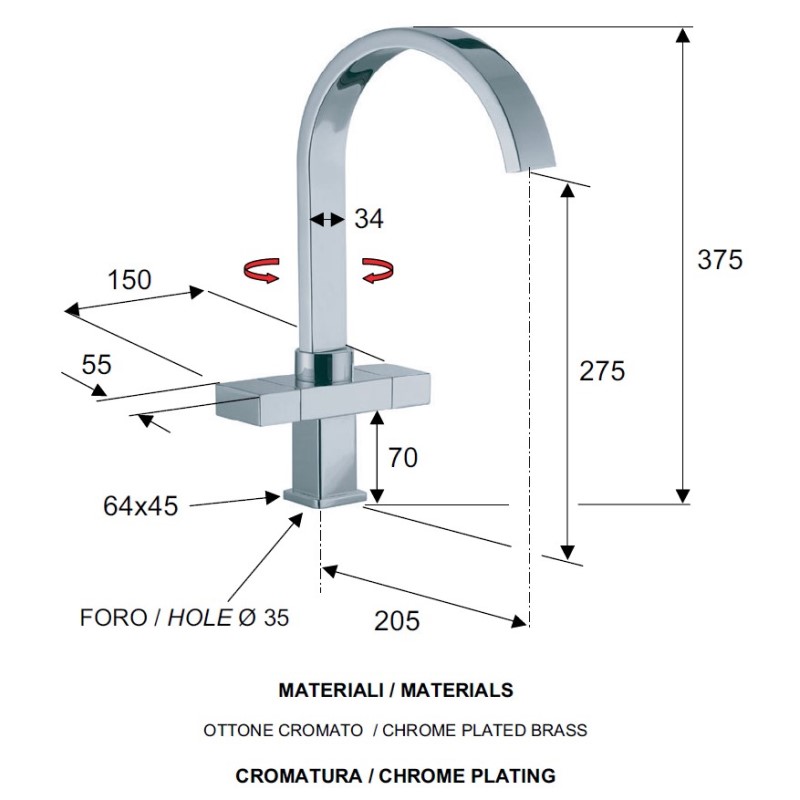 - Uitgerust met een keramische cartridge van Ø25 mm, met uitzondering van ingebouwde items die een keramische cartridge van Ø35 mm gebruiken