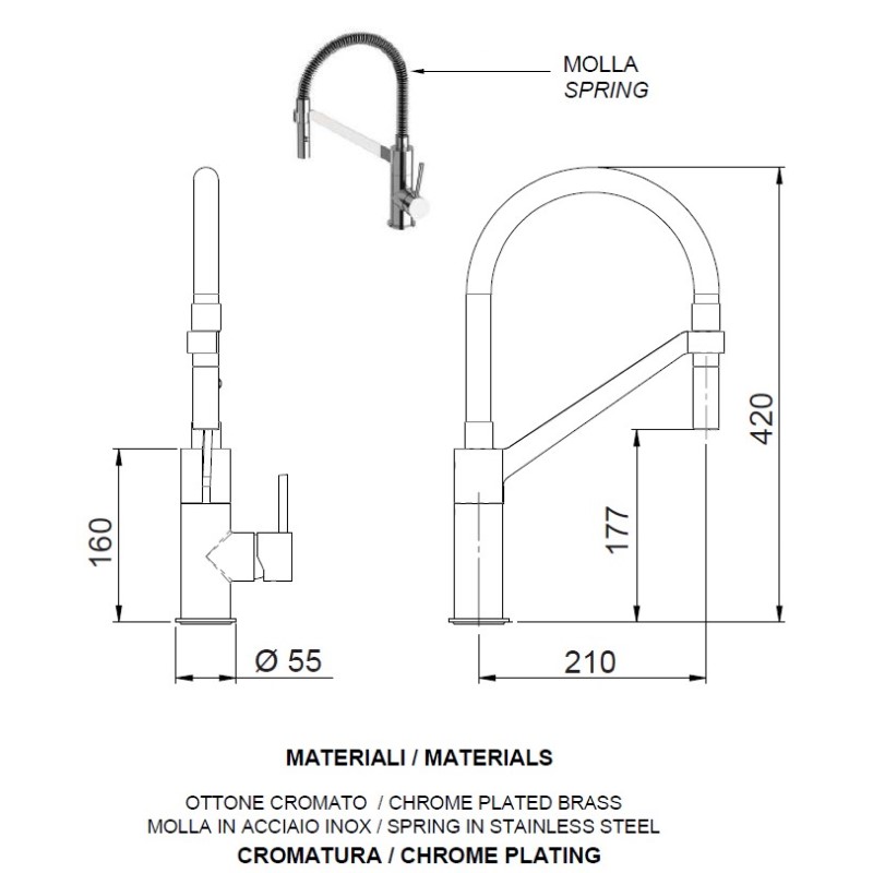 - Hoge gourmetkeukenmengkraan met kolom en veer