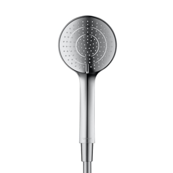 Deze Duravit Universele Handdouche 3 straalsoorten chroom UV0650016010 biedt veelzijdigheid en comfort met drie verschillende straalsoorten. De Rain straal zorgt voor een gelijkmatige en zachte waterstroom, ideaal voor een ontspannende douche-ervaring. De Soft Rain straal biedt een extra zachte waterstroom, perfect voor een delicate reiniging. De Intense Rain straal levert een krachtige waterstroom, ideaal voor het grondig wassen van het haar. De straalsoorten kunnen eenvoudig worden aangepast door te draaien aan de douchekop. Kalkafzettingen op de siliconen sproeiers kunnen gemakkelijk worden verwijderd door er licht overheen te wrijven, wat zorgt voor een langdurige en probleemloze werking.