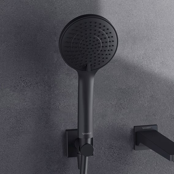 Deze Duravit Universele Handdouche 3 straalsoorten mat-zwart UV0652015046 biedt een rijke douche-ervaring met drie verschillende straalsoorten. De Rain-modus levert een gelijkmatige, zachte straal voor een ontspannende douchebeurt. De Soft Rain-modus biedt een extra zachte straal, ideaal voor een kalmerende ervaring. De Intense Rain-modus is krachtig en perfect voor het grondig wassen van het haar. Het wisselen tussen de straalsoorten gebeurt eenvoudig door te draaien aan de douchekop. Kalkafzettingen op de siliconen sproeiers kunnen gemakkelijk worden verwijderd door er licht overheen te wrijven. Met een waterverbruik van maximaal 9,5 liter per minuut (MinusFlow) is deze handdouche zowel efficiënt als milieuvriendelijk.