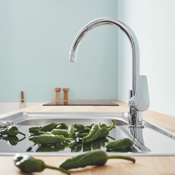 Grohe BauEdge eengreeps keukenmengkraan met hoge draaibare uitloop en keramisch cartridge 31367001