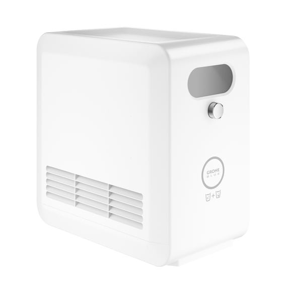 Deze Grohe Blue Professional koeler koolzuurmachine uitloop wit 40554002 levert tot 12 liter gekoeld water per uur. Het filter en de CO2-fles kunnen snel en eenvoudig worden vervangen dankzij de afneembare afdekking en draaibare aansluitingen. Het apparaat is voorzien van een kleurendisplay met druk- en draaiknop, en toont de capaciteit van het filter en de CO2 in procenten. Met afmetingen van 26,5 x 45,5 x 40 cm past het in keukenkasten vanaf 40 cm breed. De koeler beschikt over Bluetooth 4.0 en WIFI datacommunicatie met een bereik tot 10 meter, afhankelijk van wand- en vloerbedekking. Het verbruik kan worden beheerd en gecontroleerd via de Ondus App, met meldingen via push-berichten en een extra bewakingsfunctie via het dashboard. Water kan eenvoudig worden getapt via de smartphone als basis.