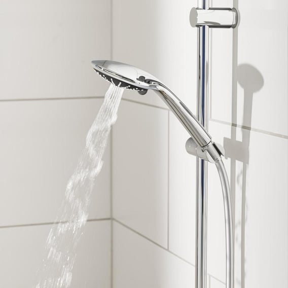 - Handdouche met een diameter van 110 mm en drie straalsoorten