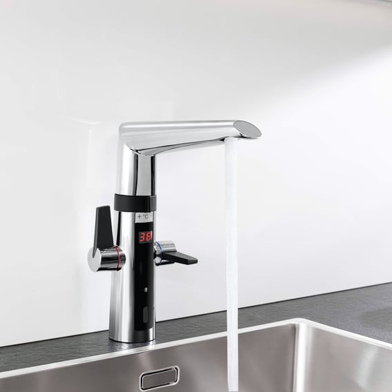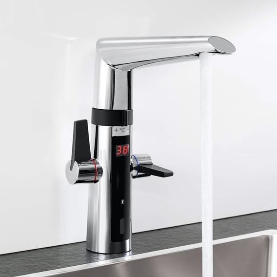 - Temperatuurdisplay met heetwaterwaarschuwing