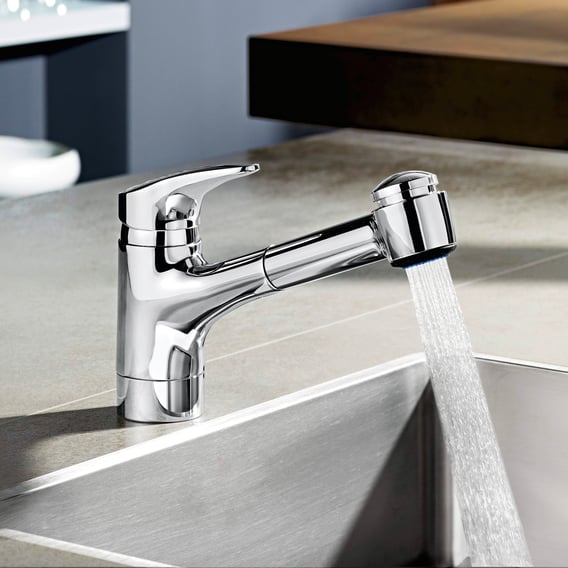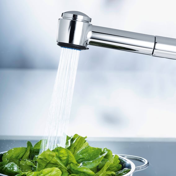 Deze Hansa Hansamix spoeltafel eenhendel-een-gats kraan uittrekbaar chroom 1382283 biedt veelzijdigheid en efficiëntie in de keuken. Hij beschikt over twee straalopties: een comfortabele straal die zacht en met lucht verrijkt is, en een douchestraal die waterbesparend en krachtig is, ideaal voor het afspoelen van fruit en groenten. De geïntegreerde luchtinlaat zorgt voor een goed gevormde waterstraal. Hij is uitgerust met een soepel werkende keramische cartouche en een uittrekbare uitloop voor extra bereik. Flexibele aansluitslangen maken de installatie eenvoudig. Hij is eigensicher tegen terugstroming en heeft een gescheiden, interne watergeleiding die voorkomt dat het water in contact komt met nikkel, en is vrijwel loodvrij met minder dan 0,3% lood.