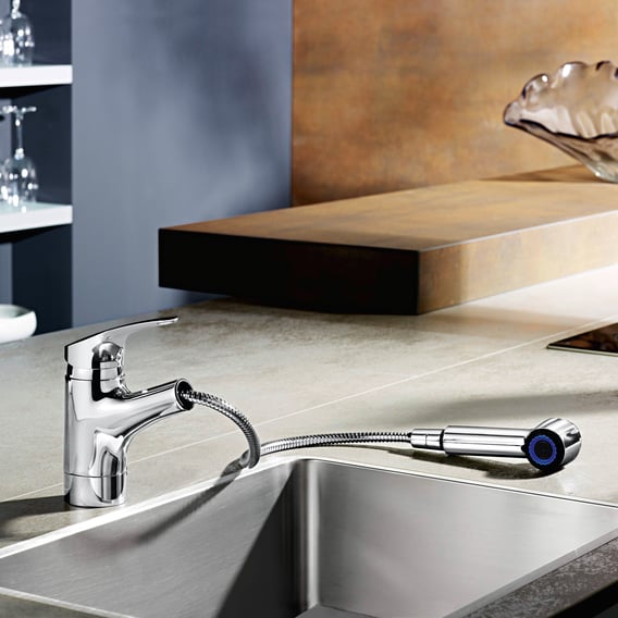 Hansa Hansamix spoeltafel eenhendel-een-gats kraan uittrekbaar chroom 1382283