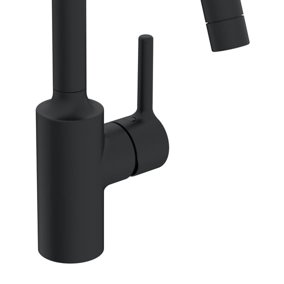 Deze Hansa Vantis wastafelkraan mat-zwart 5255226733 biedt een comfortabele waterstraal dankzij de geïntegreerde luchtinlaat, wat zorgt voor een zachte en met lucht verrijkte straal. Hij is voorzien van een luchtbeluchter die een goed gevormde waterstraal garandeert. De uitloop is draaibaar met een zwenkbereik van 120 graden, wat flexibiliteit biedt bij het gebruik. Hij is uitgerust met een soepel werkende keramische cartouche en de temperatuur kan naar wens worden ingesteld. De flexibele aansluitslangen maken de installatie eenvoudig. Let op: deze kraan wordt geleverd zonder afvoergarnituur; het afvoerventiel dient apart besteld te worden en is te vinden onder accessoires.