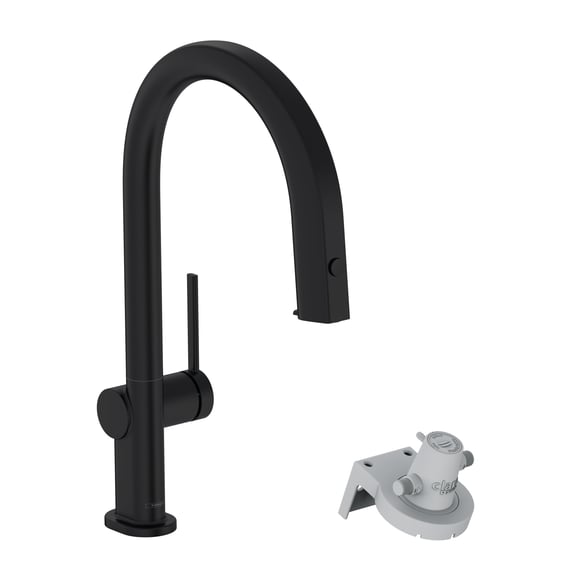Deze Hansgrohe Aqittura M91 filtersysteem 210 uittrekbare keukenkraan mat-zwart 76826670 biedt gefilterd, stil drinkwater via een knop op de uitloop. De straalsoort is een laminaire straal, wat zorgt voor een gelijkmatige en heldere waterstroom. De draaibereik is instelbaar in drie standen: 60°, 110° of 150°. Er zijn twee uitgangen voor gefilterd en ongefilterd water. Hij is voorzien van een soepel werkende keramische cartouche. Het verhoogde comfort wordt bereikt door de soepele bedieningstechniek en de royale afstand tussen de uitloop en de spoelbak (ComfortZone). De stille, soepele en beschermde slanggeleiding in de onderkast (sBox) zorgt voor extra gebruiksgemak. De uitloop is uittrekbaar tot een lengte van 76 cm en de doucheslang is voorzien van QuickConnect. Hij is uitgerust met een terugstroombeveiliging.