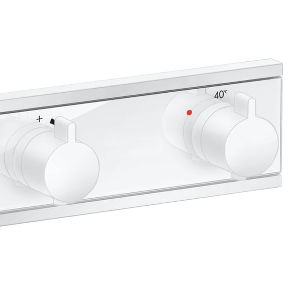 Deze Hansgrohe RainSelect thermostaat voor douche 3 verbruikers mat-wit 15381700 is ontworpen voor gebruik met drie verschillende waterbronnen, waardoor gelijktijdig gebruik mogelijk is. De activering van de waterbronnen gebeurt eenvoudig met een druk op de knop dankzij de Select-functie. De thermostaatcartridge maakt het mogelijk om de temperatuur nauwkeurig te regelen door middel van draaien, wat zorgt voor een constante watertemperatuur, zelfs bij wisselende waterdruk. Een veiligheidsslot bij 40 °C beschermt tegen per ongeluk te hoge temperaturen, terwijl een maximale temperatuur, bijvoorbeeld 42 °C, vooraf kan worden ingesteld met de Safety Function. De geïntegreerde afsluitfunctie en de mogelijkheid voor wandmontage maken dit product veelzijdig en gebruiksvriendelijk. De mat-witte afwerking biedt stijlvolle kleuraccenten voor een persoonlijke badkamerinrichting.