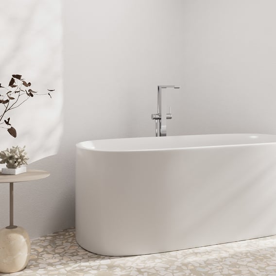 Deze Hansgrohe Tecturis E eengreeps vrijstaande badmengkraan chroom 73445000 biedt een luxueuze ervaring met zijn watervalstraal die een grote, zachte stroom creëert. Het met lucht verrijkte water zorgt voor een volle, zachte straal die aangenaam aanvoelt dankzij de AirPower technologie. Met een druk op de knop kunt u eenvoudig schakelen tussen de baduitloop en de handdouche dankzij de Select-functie. Hij is uitgerust met een soepel werkende keramische cartouche en heeft een automatische terugstelling. Voor extra veiligheid is er een terugstroombeveiliging ingebouwd. Deze kraan is ontworpen voor vloermontage en wordt geleverd met een handdouche, douchehouder en doucheslang. De handdouche biedt de PowderRain straal, die bestaat uit extra fijne, omhullende druppels, ook verrijkt met lucht voor een zachte ervaring. Kalkafzettingen op de siliconen sproeiers kunnen eenvoudig worden verwijderd door erover te wrijven dankzij de QuickClean functie. De doucheslang is knikbestendig, flexibel, gemakkelijk schoon te maken en voorzien van een draaibescherming. De lengte van de doucheslang is 1250 mm.