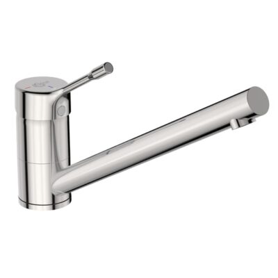 Deze Ideal Standard Ceralook eenhendel keukenmengkraan draaibaar geborsteld roestvrij staal BC292GN is ontworpen met een koudwaterinstelling in het midden voor een verminderd warmwaterverbruik dankzij de BlueStart-technologie. De uitloop is draaibaar met een zwenkbereik van 360 graden, wat zorgt voor maximale flexibiliteit in de keuken. Hij is uitgerust met een soepel werkende 38 mm keramische cartouche met een waterbesparende ECO-functie, ook wel bekend als de CLICK-cartouche. Daarnaast beschikt Hij over een geïntegreerde heetwatertemperatuurbegrenzer voor extra veiligheid. Het product wordt geleverd met een snelmontagesysteem, EASY FIX, wat de installatie eenvoudig en snel maakt.