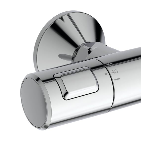 Deze Ideal Standard Ceratherm T25 thermostatische opbouw regendoucheset Ø260 mm chroom A7210AA biedt een geavanceerde douche-ervaring met zijn veelzijdige functies en kwalitatieve materialen. De regendouchekop heeft een diameter van 260 mm en biedt twee straalsoorten: een gelijkmatige, zachte regenstraal en een extra zachte regenstraal. Dankzij het kogelgewricht kan de douchekop 14° in elke richting draaien, wat flexibiliteit biedt bij het douchen. De anti-kalkfunctie maakt het eenvoudig om kalkafzettingen van de siliconen sproeiers te verwijderen door simpelweg te vegen. De handdouche, met een diameter van 100 mm, biedt ook twee straalsoorten: een extra zachte regenstraal en een intensieve, verkwikkende massagestraal. De handdouche is in hoogte verstelbaar dankzij de schuifregelaar en is voorzien van een knikbestendige, flexibele en onderhoudsvriendelijke doucheslang van 1750 mm. Het opbouw-douchethermostaat maakt het mogelijk om de waterstroom te activeren door te draaien, terwijl de thermostaatcartridge zorgt voor een constante watertemperatuur, zelfs bij wisselende waterdruk. De ECO-spaartaste reguleert de waterhoeveelheid voor een zuinige waterconsumptie. Een veiligheidsslot bij 40 °C beschermt tegen per ongeluk te hete temperaturen, en het CoolBody-ontwerp voorkomt verbrandingsgevaar dankzij de interne watergeleiding. De set is ontworpen voor wandmontage en heeft een duurzame, eenvoudig te reinigen chromen afwerking.