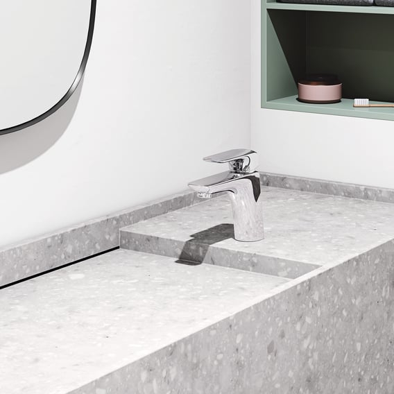 Deze Kludi AMEO wastafelkraan XL chroom 410260575 is uitgerust met een soepel werkende keramische cartouche die zorgt voor een langdurige en betrouwbare werking. Met de Eco-functie bespaart u minimaal 40% water zonder in te boeten op comfort. De uitloop is voorzien van een luchtinlaat die een goed gevormde waterstraal creëert, en de waterstraal kan in een hoek van 10° in elke richting worden versteld dankzij de s-pointer. De temperatuurbegrenzing is instelbaar voor extra veiligheid. Hij wordt geleverd met flexibele aansluitslangen en een snelmontagesysteem voor eenvoudige installatie. Let op: Hij wordt geleverd zonder afvoergarnituur; het afvoerventiel dient apart besteld te worden en is te vinden onder accessoires.
