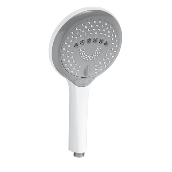 Deze Kludi FRESHLINE handdouche 3 straalsoorten wit 6790043-00 biedt een rijke douche-ervaring met drie verschillende straalsoorten. De Volumen straal zorgt voor een gelijkmatige en zachte waterstroom, ideaal voor een ontspannende douche. De Smooth straal is verrijkt met lucht, wat een zachte en comfortabele ervaring biedt. De Booster straal levert een intense en verkwikkende waterstroom, perfect voor een energieke start van de dag. Dankzij de siliconen sproeimondjes kunnen kalkafzettingen eenvoudig worden verwijderd door er licht overheen te wrijven. De handdouche is voorzien van een restwater-ontledingsfunctie, wat bijdraagt aan een langere levensduur en hygiëne. Met een diameter van 140 mm biedt deze handdouche een ruime dekking voor een optimale douche-ervaring.