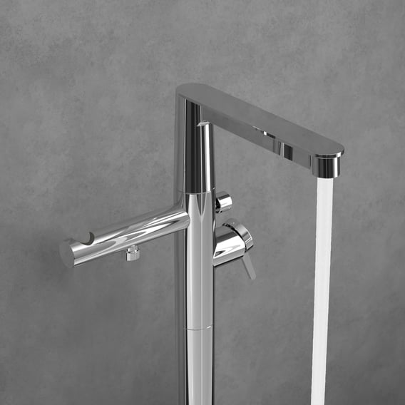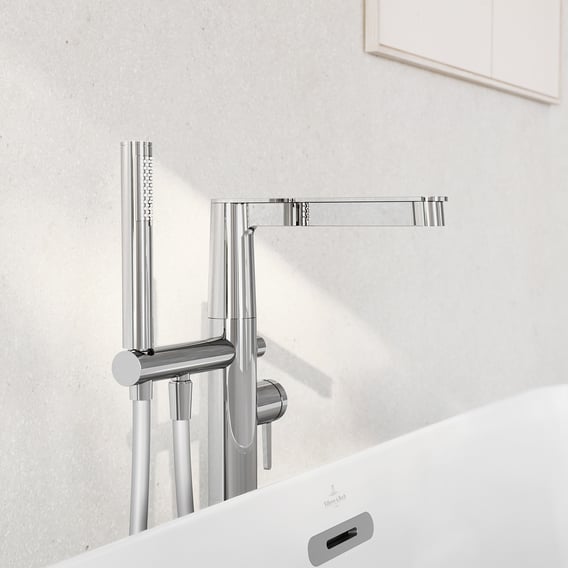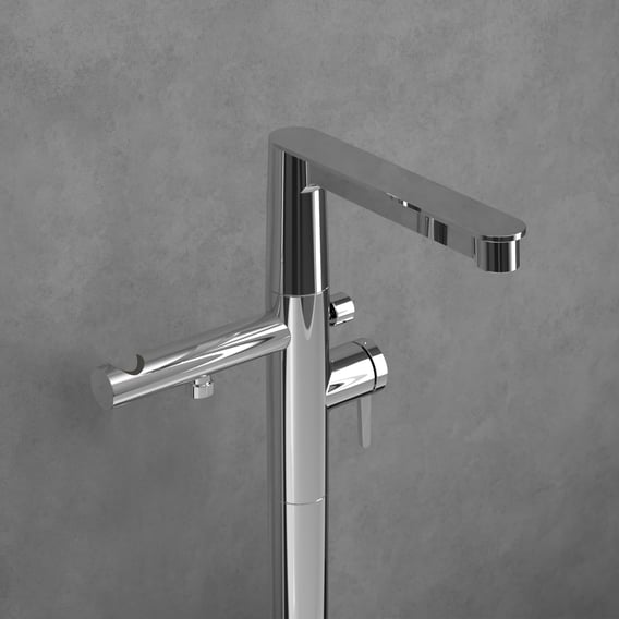 Deze Villeroy & Boch Conum eengreeps vrijstaande badmengkraan chroom TVT12700400061 is ontworpen voor vloerinstallatie en biedt een laminaire straal, wat zorgt voor een gelijkmatige en heldere waterstroom. Het water wordt geleverd in een elegant gekantelde straal, wat een verfijnde uitstraling geeft aan uw badkamer. Dankzij de SmartPressure-technologie blijft de waterstroom constant, zelfs bij schommelingen in de waterleiding. De handdouche kan eenvoudig worden geactiveerd met behulp van een omsteller. De duurzame chromen afwerking is gemakkelijk schoon te maken, waardoor het onderhoud eenvoudig is.