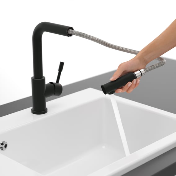 Villeroy & Boch Steel keukenmengkraan uittrekbaar draaibaar mat zwart 96970106