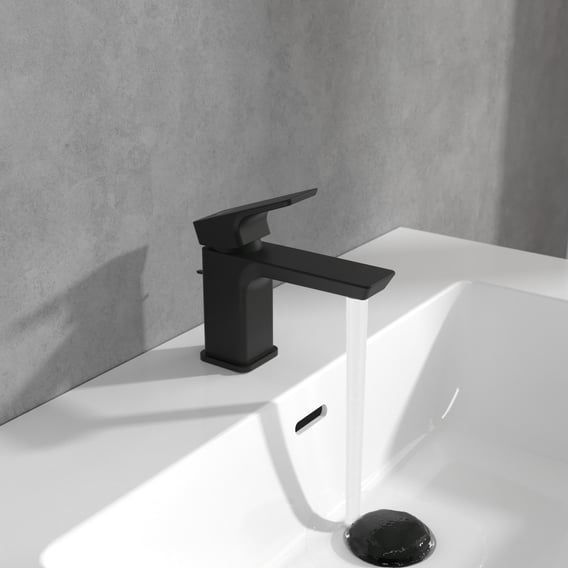 Villeroy & Boch Subway 3.0 wastafelkraan Small met AquaSmart met trekstang-afvoergarnituur mat-zwart TVW112001000K5