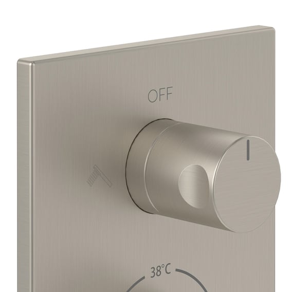 Deze Villeroy & Boch Universele thermostaat voor bad & douche 2 verbruikers nikkel geborsteld TVD00065300064 is ontworpen voor gebruik met twee verbruikers. Het wisselen tussen de verbruikers gebeurt eenvoudig door te draaien, terwijl de waterhoeveelheid ook door draaien kan worden geregeld. De thermostaat zorgt voor een constante watertemperatuur, zelfs bij schommelingen in de waterdruk. Een veiligheidsslot bij 38 °C beschermt tegen per ongeluk te hoge temperaturen. Bovendien is de thermostaat uitgerust met een terugstroombeveiliging als basis.